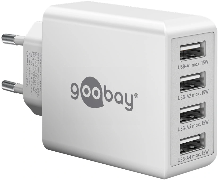 - goobay 4 portový nabíječ (30 W) 4x USB-A porty, bílý