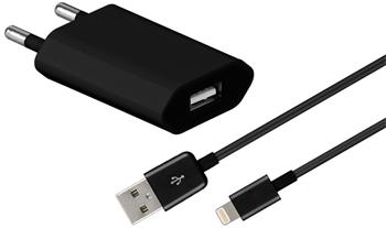 Nabíjecí ultra slim adaptér 230V na USB 1A a Lightning iPhone kabel 1m černý