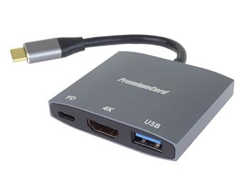 PremiumCord adaptér USB-C na HDMI, USB3.2, PD, rozlišení 4K a FULL HD 1080p,