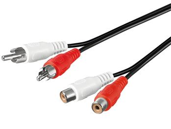 Kabel pro prodloužení spojení dvou audio zařízení zvukovým signálem stereo kvality. Na obou stranách jsou 2 konektory RCA (cinch).