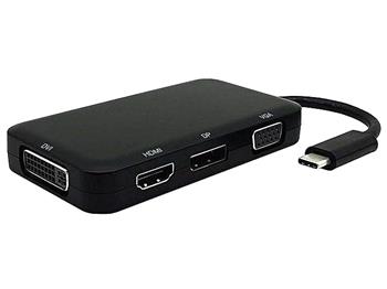 Tento adaptér umožňuje vysoce kvalitní převod videa a zvuku z USB-C na čtyři různé výstupy: HDMI, DVI, VGA, DisplayPort (vždy pouze jeden monitor/TV/projektor). Funguje jako externí grafická karta s výstupem HDMI, DVI, VGA a DP.